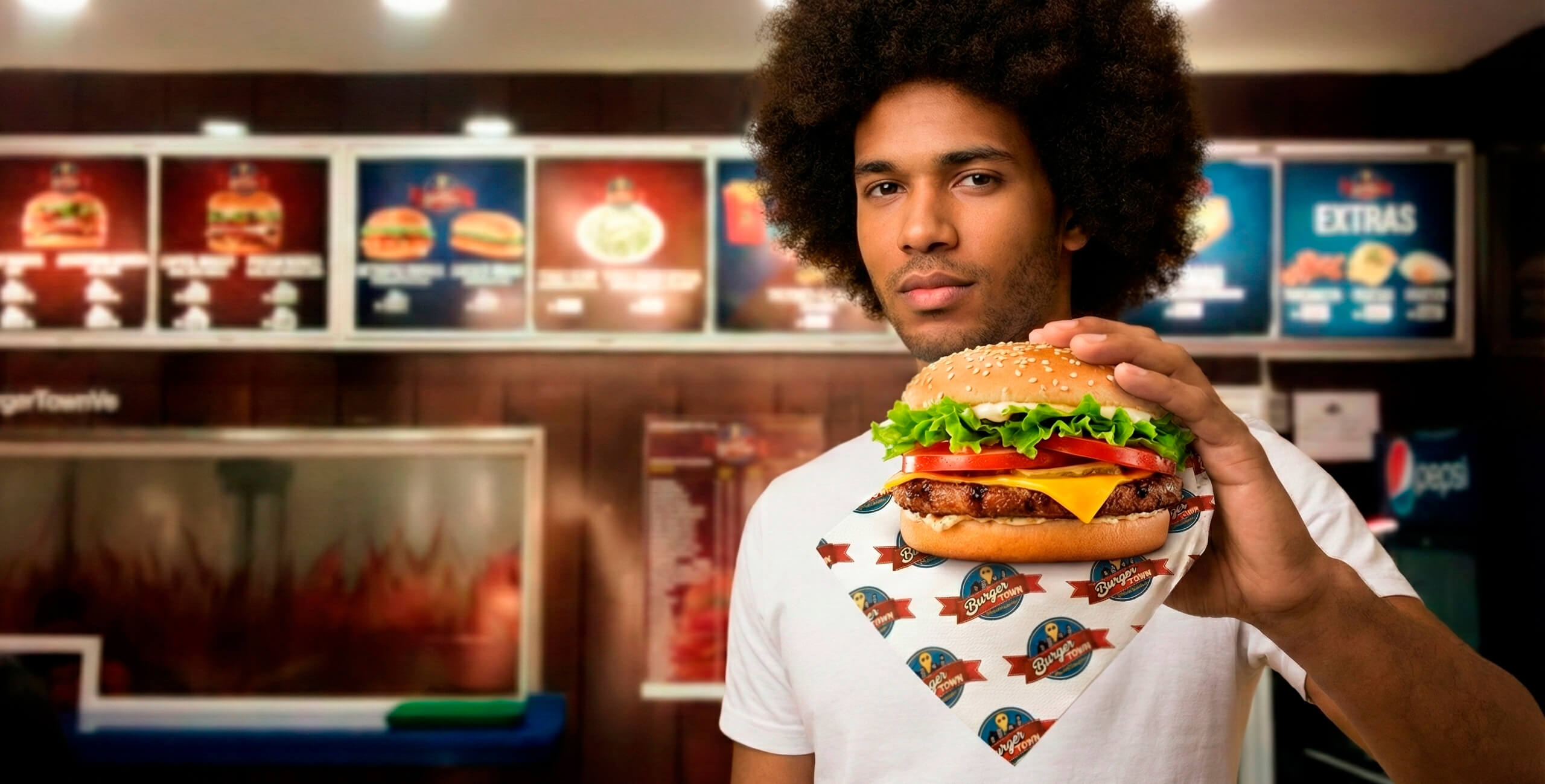 La nueva línea gráfica dotó a Burger Town de una identidad visual potente y fácilmente reconocible en el sector.